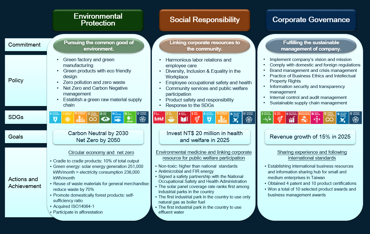Ua Floors takes the United Nations Sustainable Development Goals (SDGs) as its sustainable blueprint, integrates environmental, social and corporate governance (ESG) concepts into corporate commitments and operating strategies, integrates internal and external resources. We hope that we will continue to progress and innovate, become a force for change in Taiwan's forest industry, and actively promote a better future for future generations.