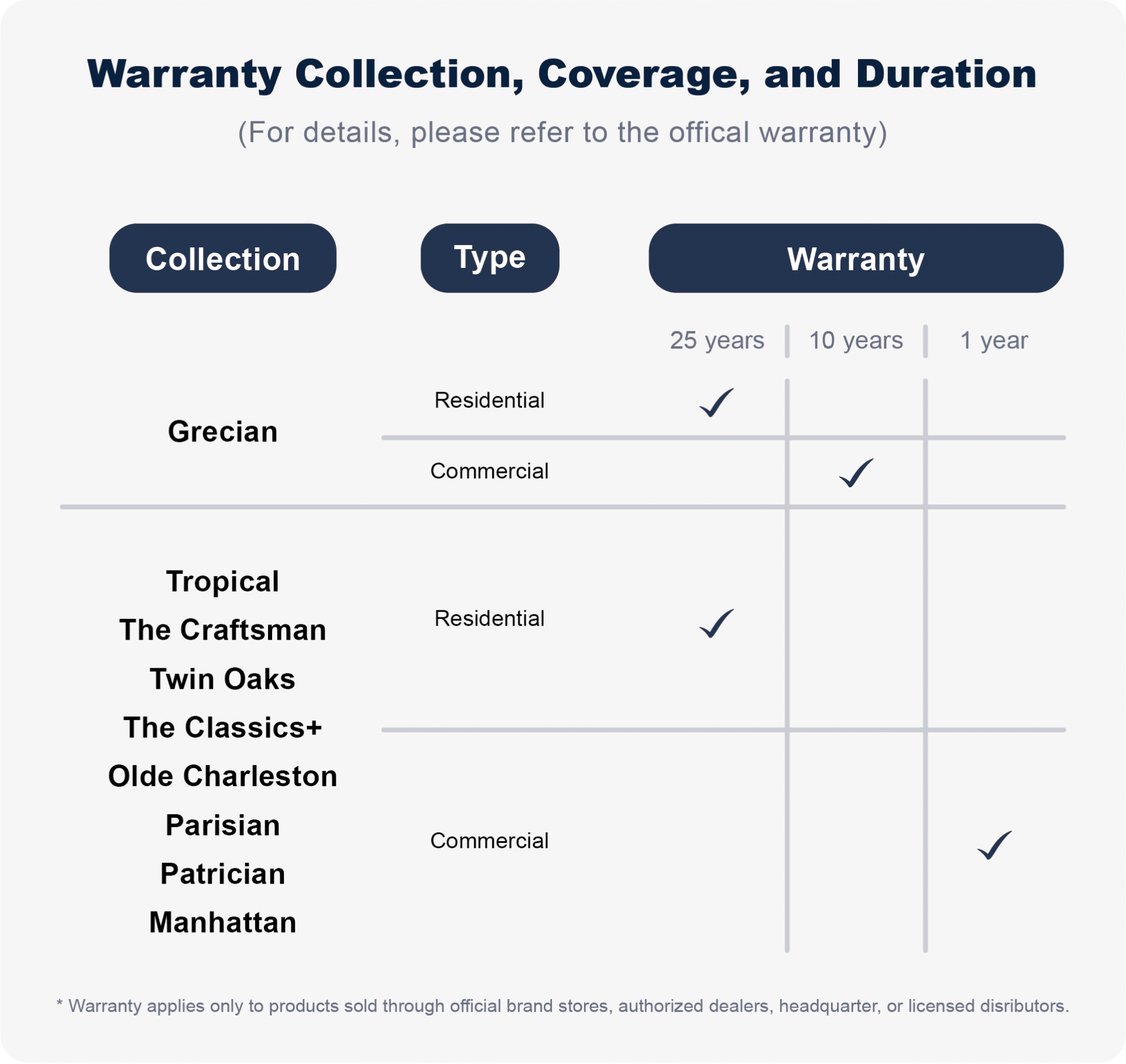 - 3mm: The Craftsman Collection / The Classics+ Collection / Parisian Collection / Olde Charleston Collection / Patrician Collection