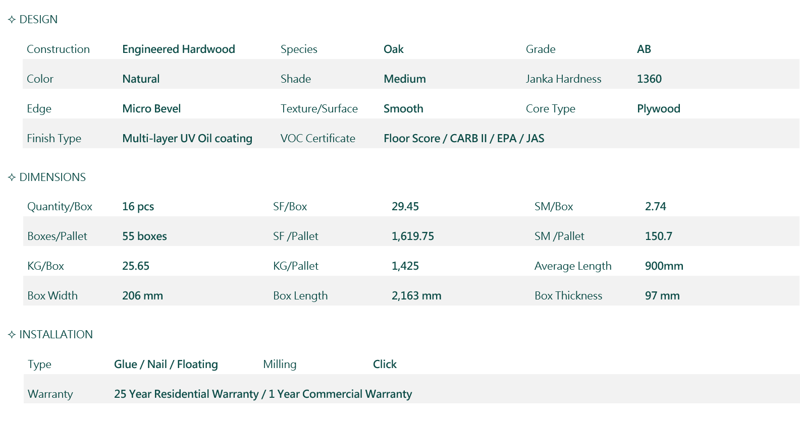 Swedish patented technology, the angle-in and drop-in locking system has superior stability and convenience, allowing the installation process smooth and easy.
