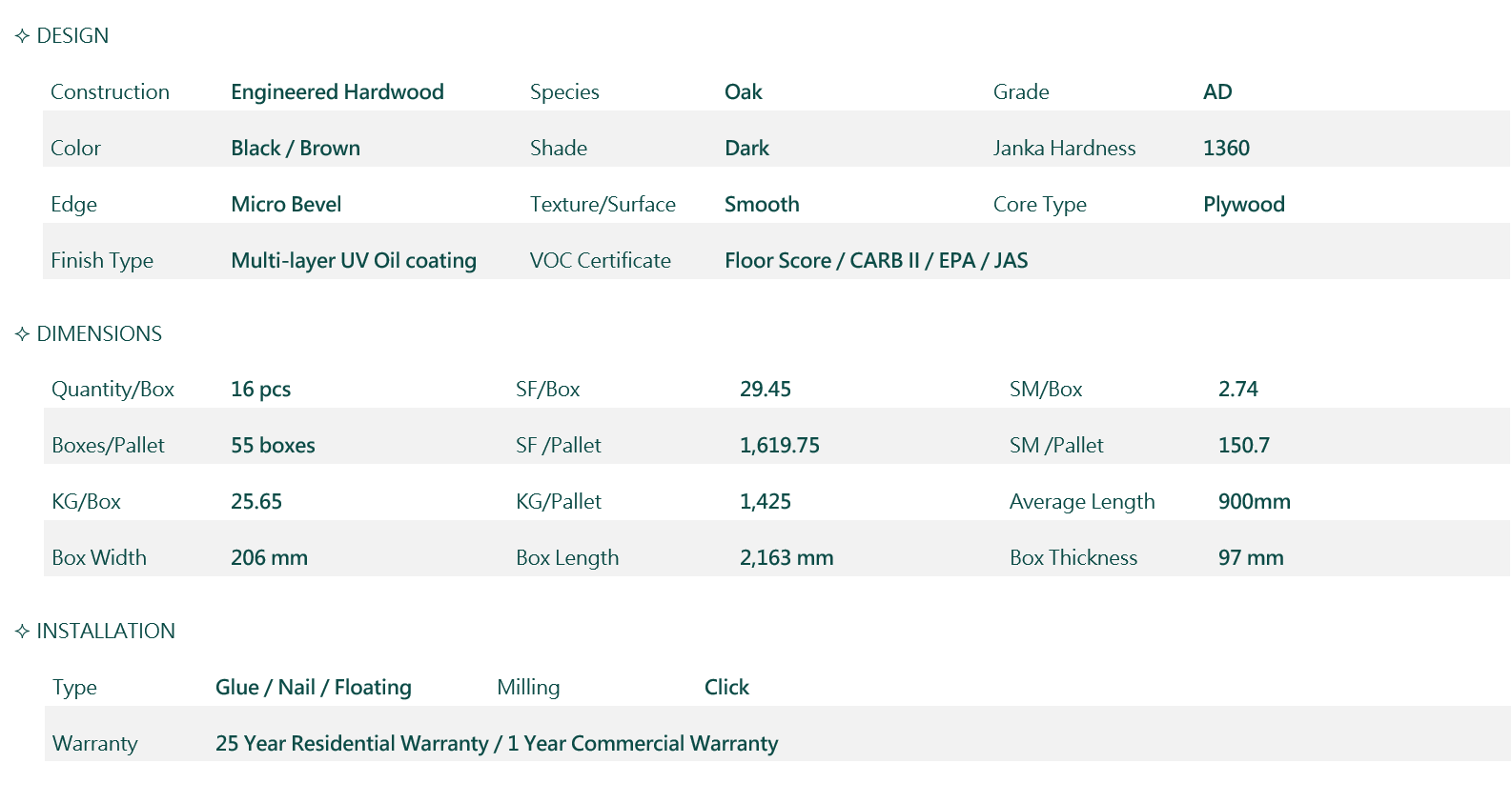 Swedish patented technology, the angle-in and drop-in locking system has superior stability and convenience, allowing the installation process smooth and easy.