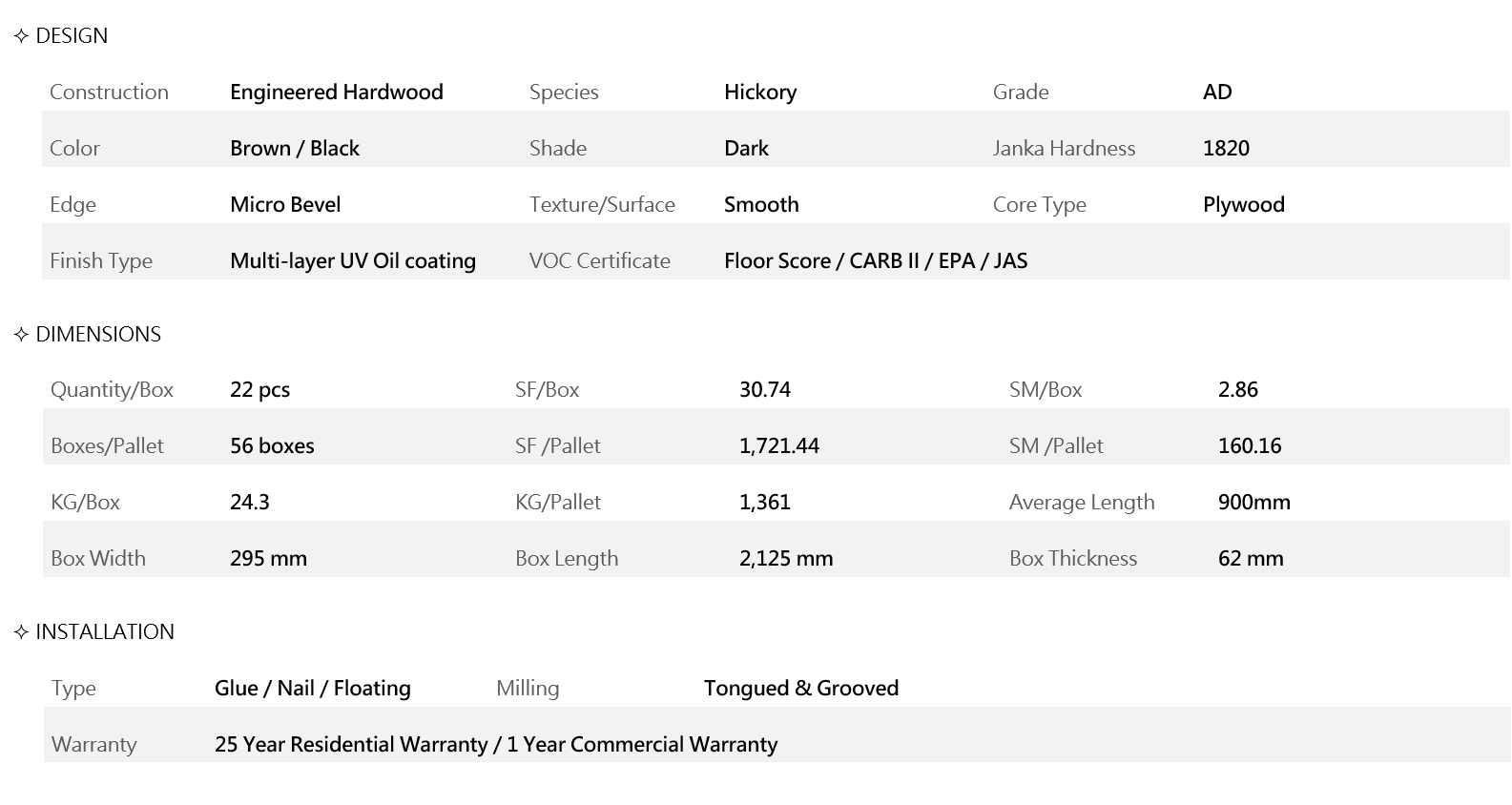 5 1/2inch wide, with micro beveled edges creates a highly attractive plank flooring. Manhattan is easy to care for and keep clean, giving you enduring beauty for many years to come. The rich colours and sheer beauty will delight your family, impress your friends and enhance your home for many years.