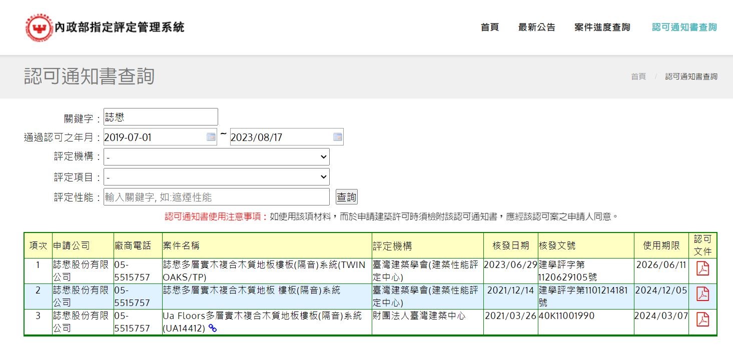 ↓歡迎至內政部查詢與下載隔音降噪認可通知書