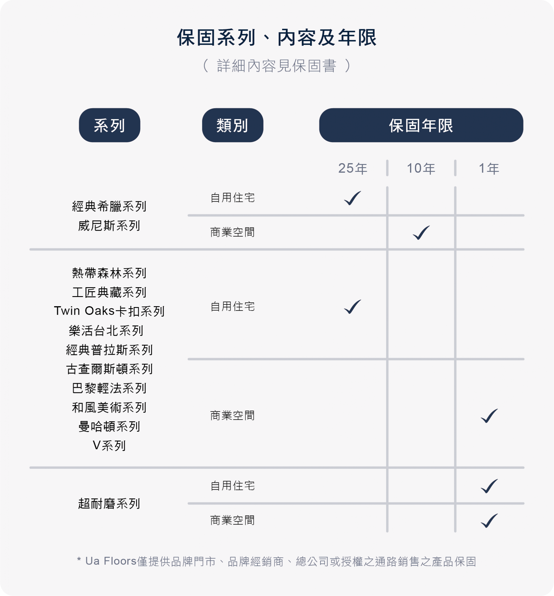 Ua Floors產品符合多項國際標準,您可安心享用Ua Floors帶來的舒適感受。我們歡迎您向直屬銷售商家或業務人員申請原廠「保固書」,Ua Floors將於保固期間內提供產品保固服務。