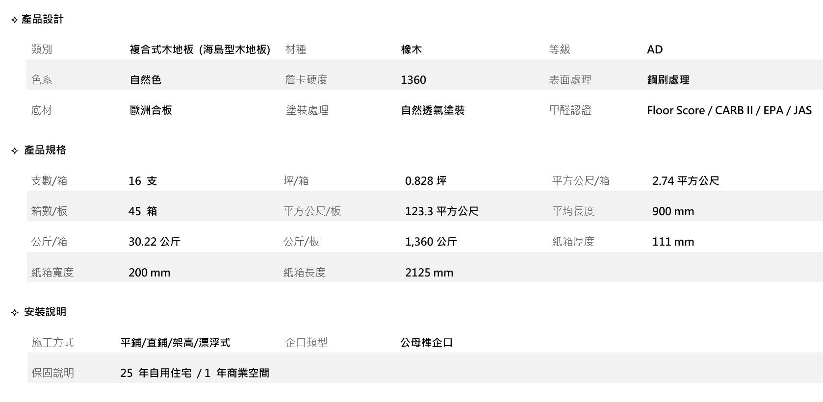 巴黎輕法系列以歐洲白橡木作為主要材種,以法國浪漫的著名城市為基底色,優雅古典的情調中不帶有炫麗浮誇的顏色表現,190mm寬板配上3mm天然實木層,經過嚴格的材種挑選和質量檢驗,呈現出其木頭質感與紋理的完整性;鋪設於極簡風、大坪數的空間裡,更能展現其優雅與大氣。